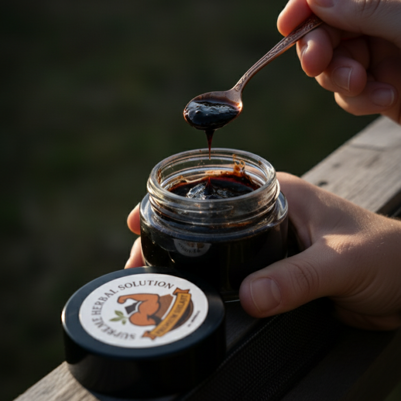 Experience the purity of nature's most powerful resin. Our Shilajit is hand harvested from pristine Himalayan peaks, where mineral rich plant matter has transformed over centuries into this rare, potent resin. Each batch is carefully purified, tested, and bottled to preserve its full spectrum of bioactive compounds giving you strength, focus, and vitality straight from the mountains.